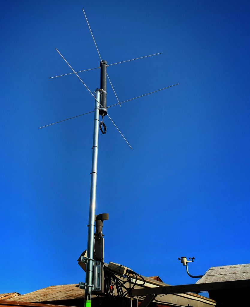 Dual band turnstyle antenna on 1672 SatNOGS station