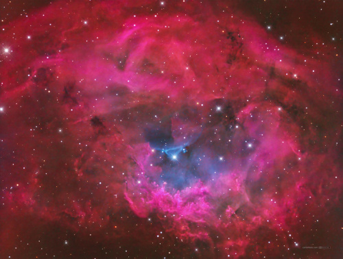 Close to 80 hours of integration time and really surprised by the blue bubble that appears in the middle (not the bright blue triangle, the big blue subtle bubble on top of that) .
